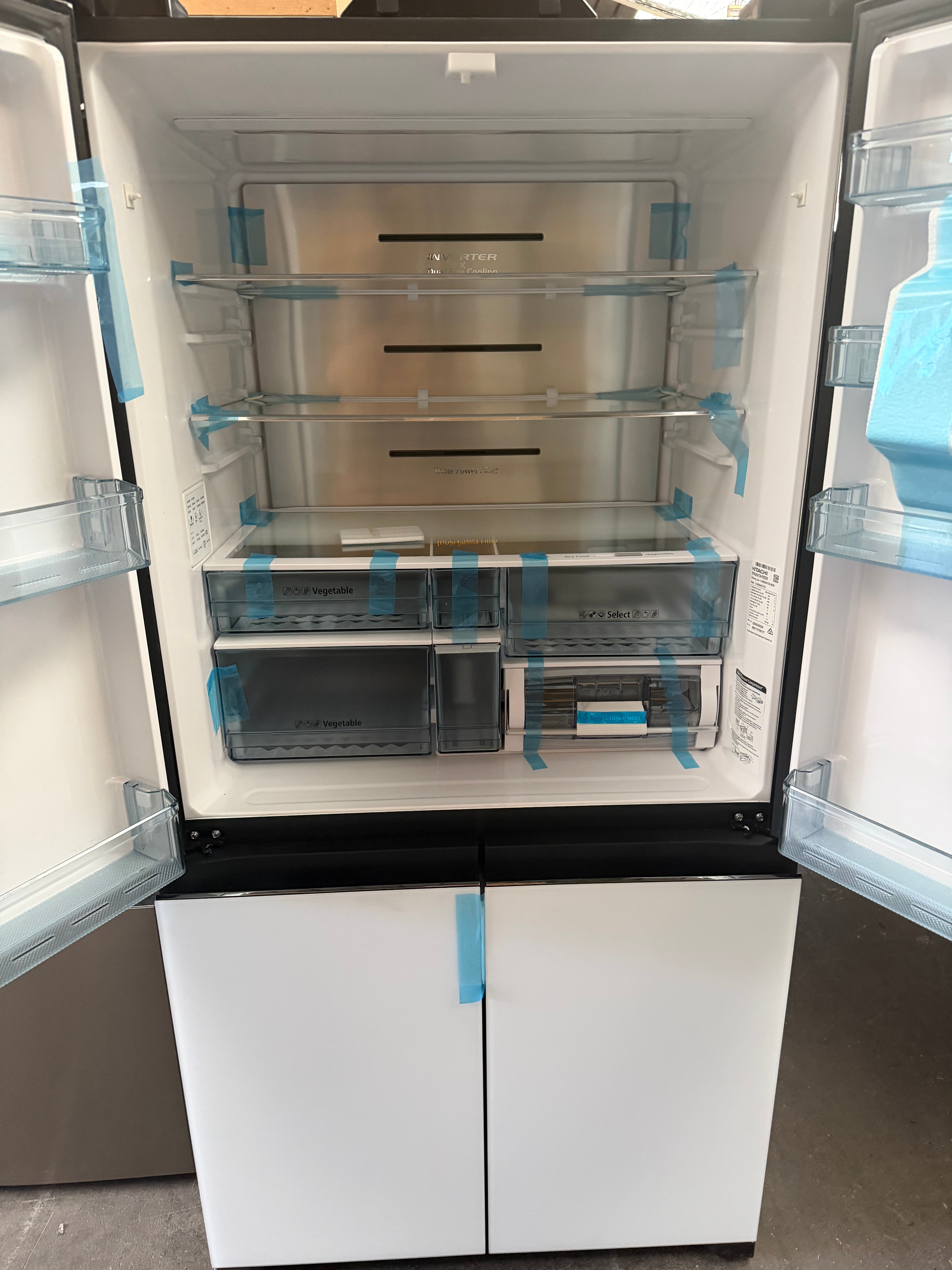 The Hitachi RWB640VT0X-1MGW refrigerator delivers advanced food preservation technology with flexible storage zones, vacuum sealing functionality and a generous 569-litre total capacity. Designed for modern households, this model combines intelligent cooling features with premium internal organisation.