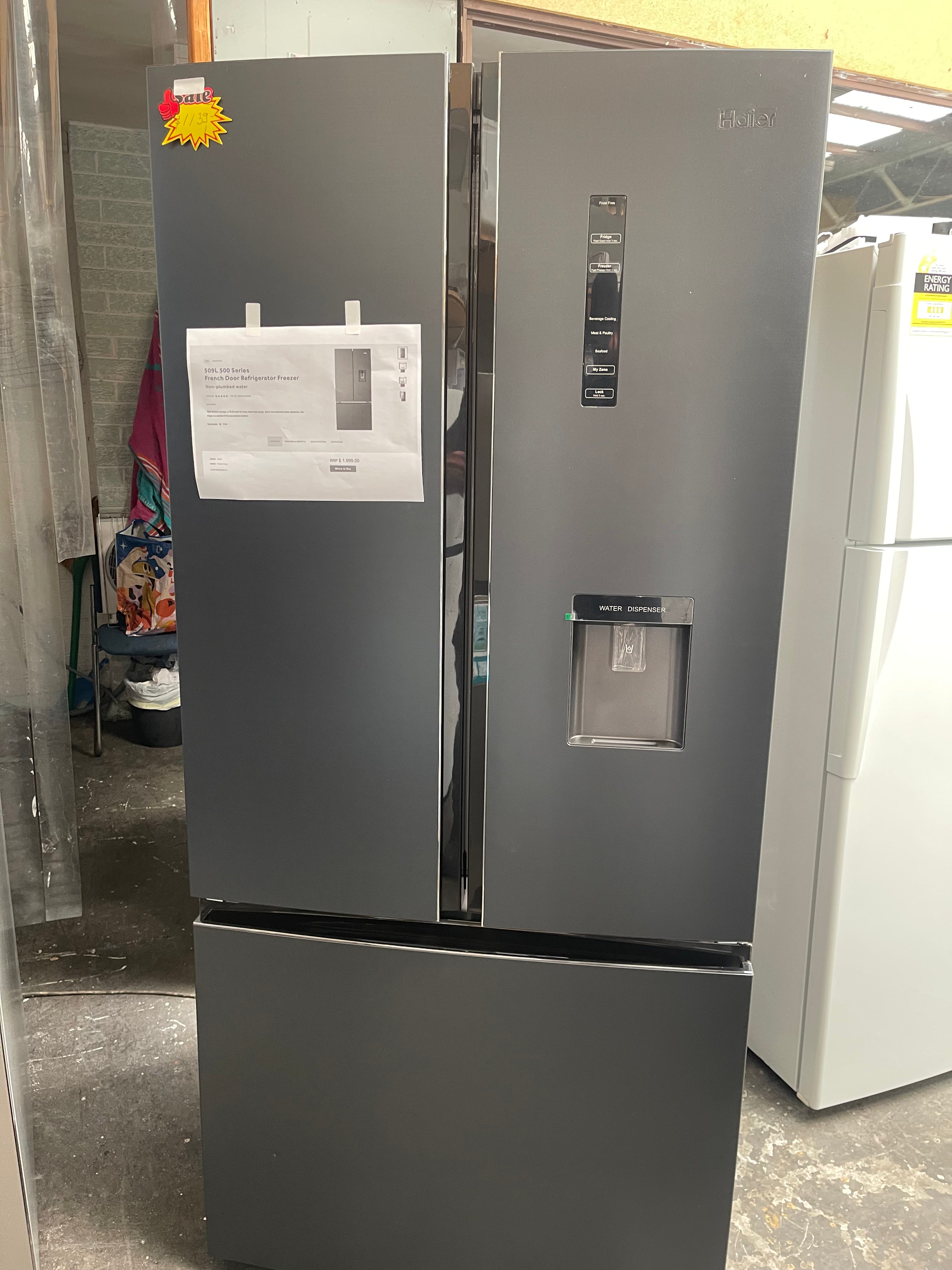 The Haier HRF520FHC is a 489 L French door refrigerator in sleek black. With MyZone™ adjustable temperature drawer, Super Freeze for rapid cooling, Multi-Zone Air for even temperature distribution and a non-plumbed water dispenser, it blends modern design with everyday practicality. This is a manufacturer refurbished unit supplied with a 12 month DMS Appliances warranty.